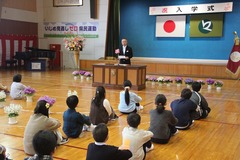 入学式の様子です。 4名の新1年生が牧小学校の仲間に加わりました。 全校児童22名で、仲良く、協力しながら学校生活を送ってくれることと思っております。